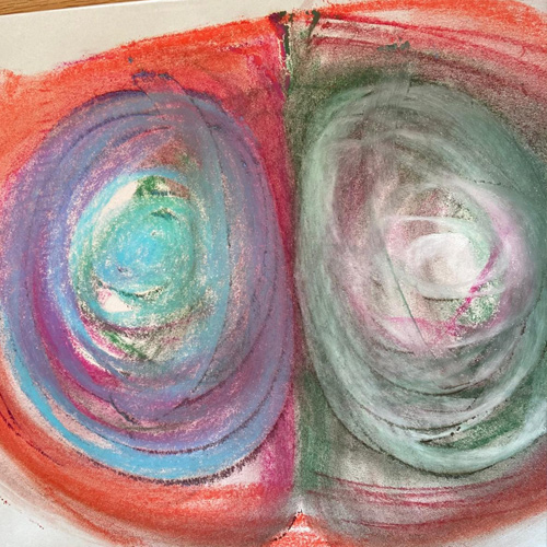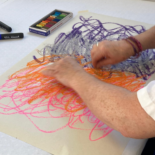 practice, a bilateral drawing process using both hands, and a brief shared reflection on what emerged.
